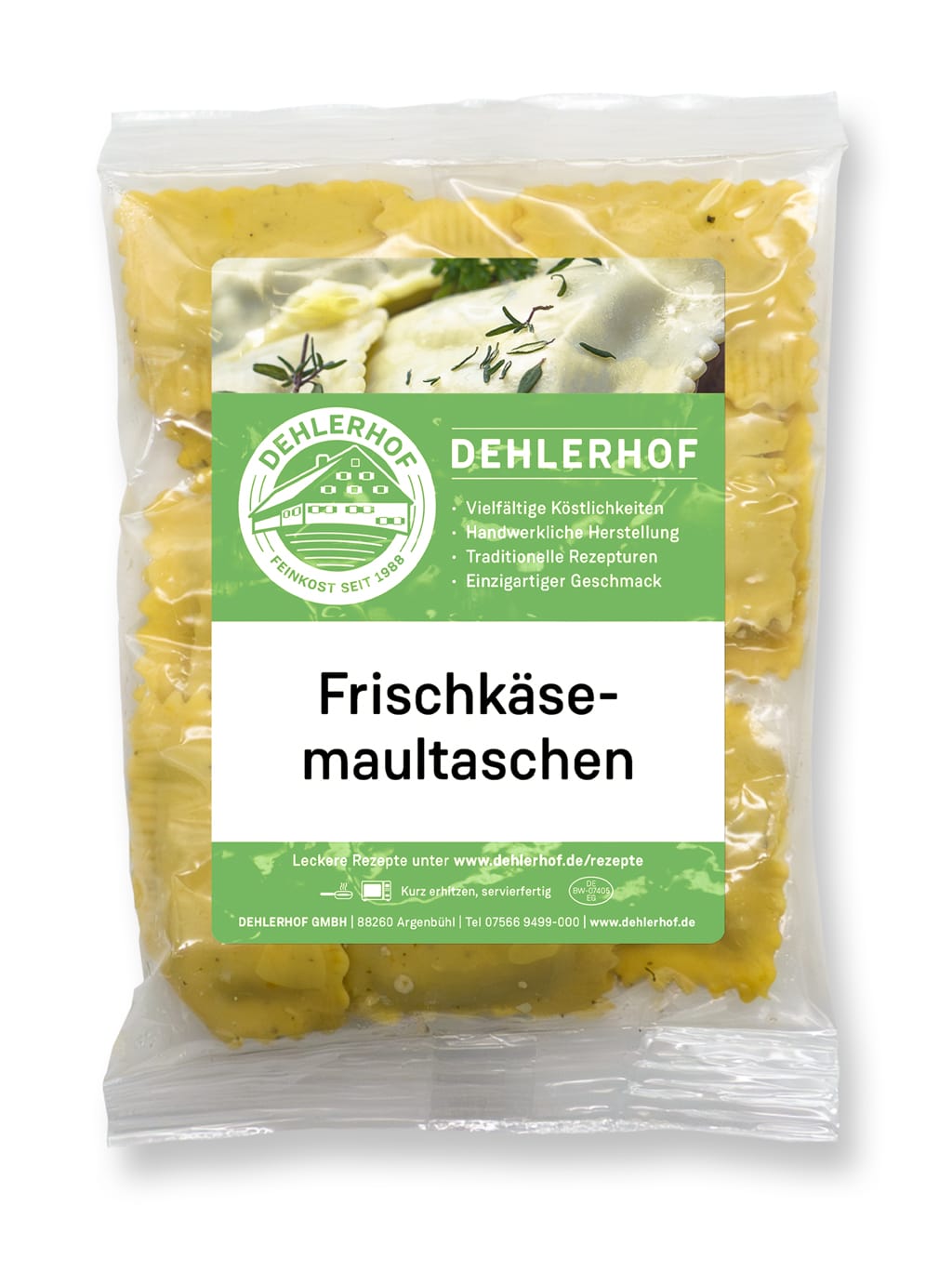 Die Frischkäsemaultaschen können Sie als feines Sommergericht servieren: Dazu schneiden Sie rote und gelbe Paprikaschoten klein und rösten sie im Backofen oder unter dem heißen Grill bis die Haut sich abtrennen lässt. Garen Sie nun in große Scheiben geschnittene Eiertomaten und Zucchini im Backofen oder unter dem Grill und braten Sie die Maultaschen in heißem Olivenöl mit Knoblauch und Basilikumblättern an. Dann geben Sie das Gemüse und einen gewürfelten Büffelmozzarella dazu und würzen das Ganze mit schwarzem Pfeffer aus der Mühle. Ebenso köstlich schmecken Frischkäsemaultaschen auf Blattspinat mit einer Sahnesoße.