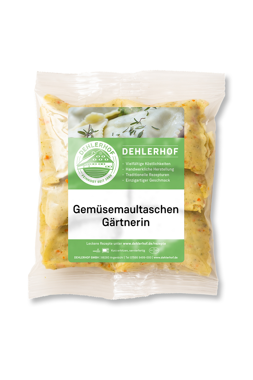 Gemüsemaultaschen aus der Packung nehmen und in leicht kochendem Wasser 3 Minuten erhitzen.